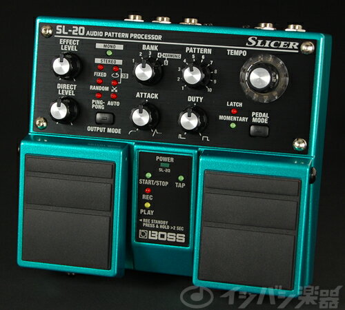 BOSS / SL-20 Slicer ボス スライサー価格: 21,000円レビュー評価: 0.0 レビュー数:0 スピード感ある個性的なサウンドを演出するツイン・ペダルのスライサー。SL-20は、50種類にもおよぶ個性的なスライス・パターンや、多彩なアウトプット・モードなどを駆使して、スピード感のあるスライス・グルーヴ・サウンドを演出することができます。ギタリスト/ベーシストだけではなく、キーボーディストやDJなど、幅広いユーザーにおすすめのエフェクターです。個性的な50種類のスライス・パターンを搭載。シンプルな和音入力をメロディー・パターンに変えるハーモニー・パターンも搭載。ペダルを踏んでいる間だけエフェクト・オンになるモーメンタリー・モードを装備。タップ・テンポや外部ペダルによる音色のリアルタイム・コ |